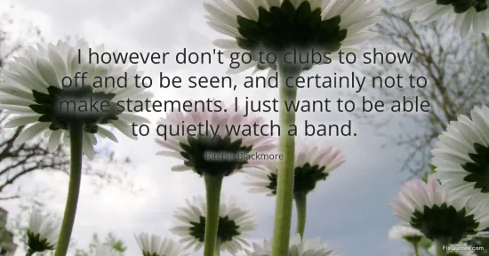 Blackmore, Ritchie. "I however don't go to clubs to show off and to be seen, and certainly not to make statements. I just want to be able to quietly watch a band." FixQuotes. January 15, 2026. https://fixquotes.com/quotes/i-however-dont-go-to-clubs-to-show-off-and-to-be-153351/.