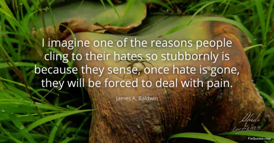 Baldwin, James A. (2026, February 12). I imagine one of the reasons people cling to their hates so stubbornly is because they sense, once hate is gone, they will be forced to deal with pain. FixQuotes. https://fixquotes.com/quotes/i-imagine-one-of-the-reasons-people-cling-to-31745/