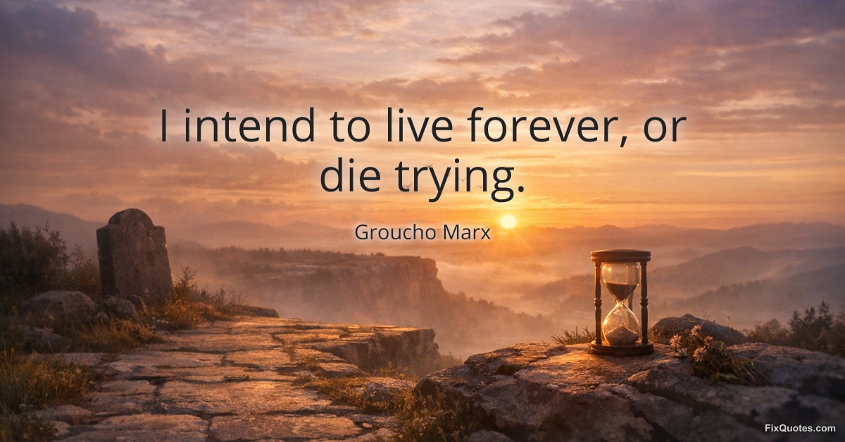 Marx, Groucho. (2026, February 1). I intend to live forever, or die trying. FixQuotes. https://fixquotes.com/quotes/i-intend-to-live-forever-or-die-trying-7423/