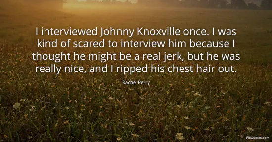 Perry, Rachel. "I interviewed Johnny Knoxville once. I was kind of scared to interview him because I thought he might be a real jerk, but he was really nice, and I ripped his chest hair out." FixQuotes. January 16, 2026. https://fixquotes.com/quotes/i-interviewed-johnny-knoxville-once-i-was-kind-of-93004/.