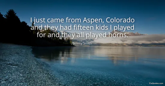 Smith, Jimmy. "I just came from Aspen, Colorado and they had fifteen kids I played for and they all played horns." FixQuotes. January 16, 2026. https://fixquotes.com/quotes/i-just-came-from-aspen-colorado-and-they-had-83667/.