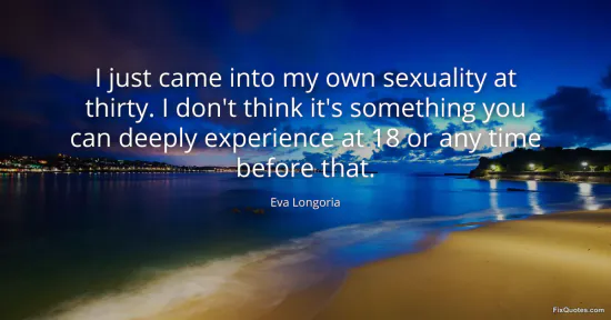 Longoria, Eva. "I just came into my own sexuality at thirty. I don't think it's something you can deeply experience at 18 or any time before that." FixQuotes. January 17, 2026. https://fixquotes.com/quotes/i-just-came-into-my-own-sexuality-at-thirty-i-65804/.