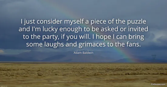 Baldwin, Adam. "I just consider myself a piece of the puzzle and I'm lucky enough to be asked or invited to the party, if you will. I hope I can bring some laughs and grimaces to the fans." FixQuotes. January 15, 2026. https://fixquotes.com/quotes/i-just-consider-myself-a-piece-of-the-puzzle-and-157625/.