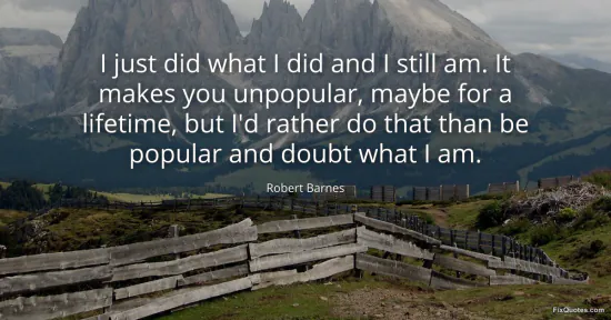 Barnes, Robert. (2026, January 15). I just did what I did and I still am. It makes you unpopular, maybe for a lifetime, but I'd rather do that than be popular and doubt what I am. FixQuotes. https://fixquotes.com/quotes/i-just-did-what-i-did-and-i-still-am-it-makes-you-151234/