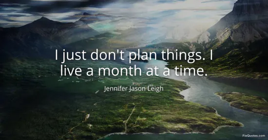There is a quiet provocation in Jennifer Jason Leigh saying she lives "a month at a time". In an industry built on scheduling, branding, and five-year arcs, refusing to "plan things" reads less like aimlessness than a kind of tactical resistance. It undercuts the modern self-help commandment that adulthood is synonymous with optimization: goals, spreadsheets, vision boards, the always-on performance of being in control.