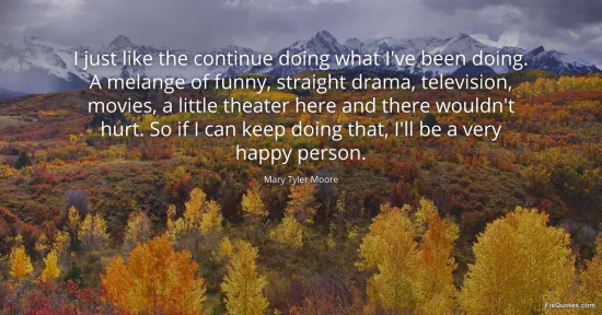 Moore, Mary Tyler. "I just like the continue doing what I've been doing. A melange of funny, straight drama, television, movies, a little theater here and there wouldn't hurt. So if I can keep doing that, I'll be a very happy person." FixQuotes. January 16, 2026. https://fixquotes.com/quotes/i-just-like-the-continue-doing-what-ive-been-88661/.