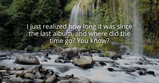Lynne, Jeff. "I just realized how long it was since the last album, and where did the time go? You know?" FixQuotes. January 16, 2026. https://fixquotes.com/quotes/i-just-realized-how-long-it-was-since-the-last-121261/.