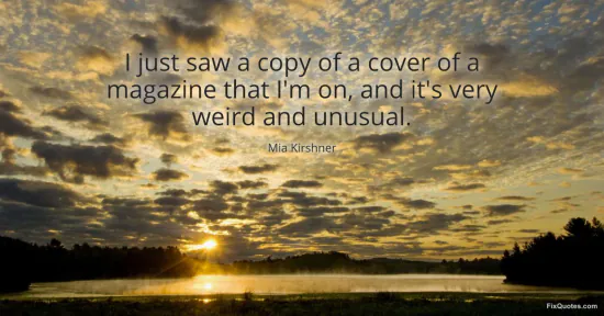 Kirshner, Mia. (2026, January 17). I just saw a copy of a cover of a magazine that I'm on, and it's very weird and unusual. FixQuotes. https://fixquotes.com/quotes/i-just-saw-a-copy-of-a-cover-of-a-magazine-that-51629/