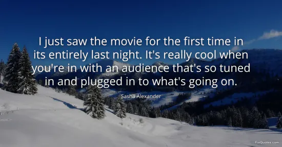 Alexander, Sasha. (2026, January 16). I just saw the movie for the first time in its entirely last night. It's really cool when you're in with an audience that's so tuned in and plugged in to what's going on. FixQuotes. https://fixquotes.com/quotes/i-just-saw-the-movie-for-the-first-time-in-its-116609/