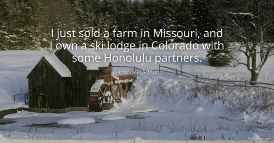 MacArthur, James. (2026, January 17). I just sold a farm in Missouri, and I own a ski lodge in Colorado with some Honolulu partners. FixQuotes. https://fixquotes.com/quotes/i-just-sold-a-farm-in-missouri-and-i-own-a-ski-62123/