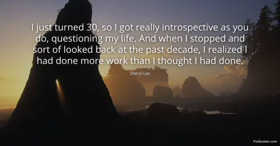 Lee, Sheryl. (2026, February 16). I just turned 30, so I got really introspective as you do, questioning my life. And when I stopped and sort of looked back at the past decade, I realized I had done more work than I thought I had done. FixQuotes. https://fixquotes.com/quotes/i-just-turned-30-so-i-got-really-introspective-as-165828/
