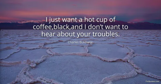 Bukowski, Charles. (2026, February 10). I just want a hot cup of coffee,black,and I don’t want to hear about your troubles. FixQuotes. https://fixquotes.com/quotes/i-just-want-a-hot-cup-of-coffeeblackand-i-dont-185194/