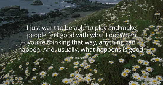 Mark Knopfler points to a simple, liberating ethic: make the work a gift and keep it playful. The verb play carries a double meaning for him. It is the literal act of making music and the childlike stance of curiosity, where ego loosens, time stretches, and you try things because they feel right. When the aim is to help the room feel good, rather than to impress, the fear of being judged fades and the ear opens. That is when surprises arrive: a note held a fraction longer, a space left for silence, a spontaneous exchange with the band that turns into a moment the audience will remember.