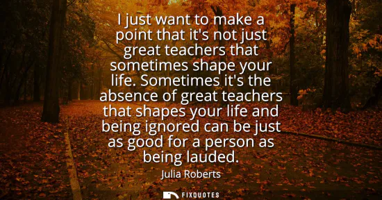 "I just want to make a point that it's not just great teachers that sometimes shape your life. Sometimes it's the absence of great teachers that shapes your life and being ignored can be just as good for a person as being lauded"