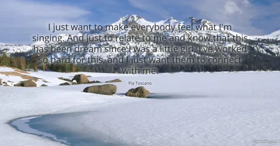 Toscano, Pia. "I just want to make everybody feel what I'm singing. And just to relate to me and know that this has been dream since I was a little girl. I've worked so hard for this, and I just want them to connect with me." FixQuotes. January 15, 2026. https://fixquotes.com/quotes/i-just-want-to-make-everybody-feel-what-im-170279/.