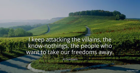 Goldstein, Al. (2026, January 18). I keep attacking the villains, the know-nothings, the people who want to take our freedoms away. FixQuotes. https://fixquotes.com/quotes/i-keep-attacking-the-villains-the-know-nothings-8942/
