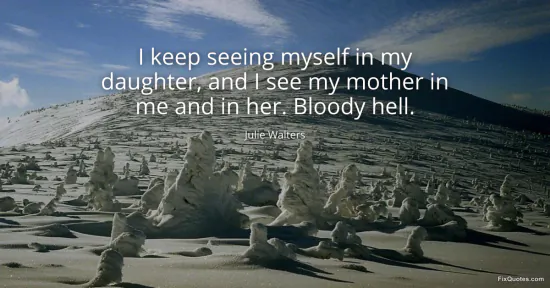 Walters, Julie. "I keep seeing myself in my daughter, and I see my mother in me and in her. Bloody hell." FixQuotes. January 15, 2026. https://fixquotes.com/quotes/i-keep-seeing-myself-in-my-daughter-and-i-see-my-129721/.