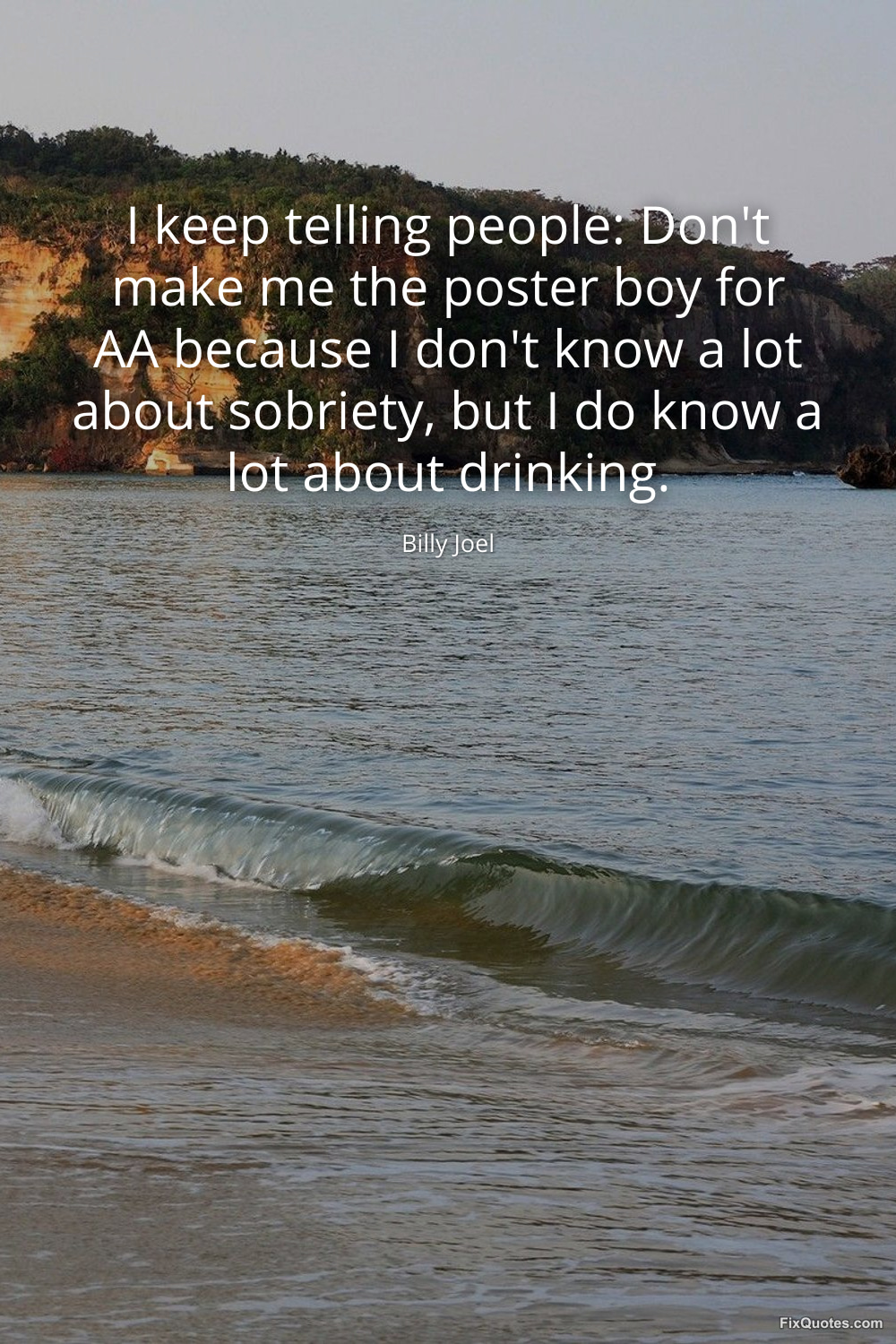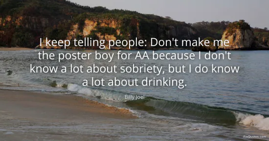 Joel, Billy. "I keep telling people: Don't make me the poster boy for AA because I don't know a lot about sobriety, but I do know a lot about drinking." FixQuotes. January 17, 2026. https://fixquotes.com/quotes/i-keep-telling-people-dont-make-me-the-poster-boy-46518/.