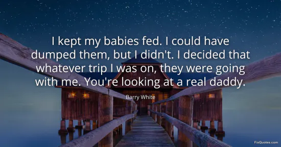 White, Barry. (2026, January 16). I kept my babies fed. I could have dumped them, but I didn't. I decided that whatever trip I was on, they were going with me. You're looking at a real daddy. FixQuotes. https://fixquotes.com/quotes/i-kept-my-babies-fed-i-could-have-dumped-them-but-109266/