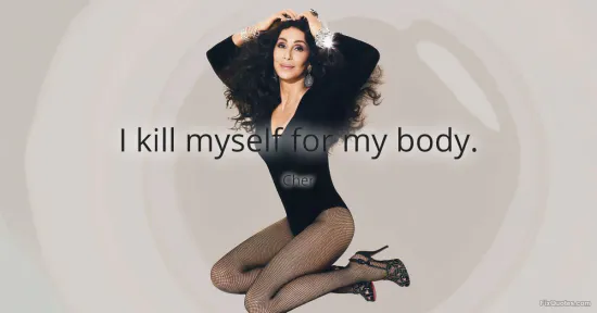 The intent is double-edged. On one level, it’s comic exaggeration: Cher’s timing is too sharp to miss the punchline. On another, it’s a candid admission that the body in pop culture isn’t just a body; it’s an instrument, a billboard, a contract. When she says she "kills" herself for it, she’s talking about discipline, rehearsal, dieting, training, pain tolerance - the unglamorous maintenance required to keep being read as "Cher" in public. The body isn’t merely hers; it’s a product she has to keep manufacturing.