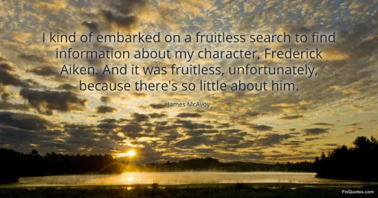 McAvoy, James. (2026, January 17). I kind of embarked on a fruitless search to find information about my character, Frederick Aiken. And it was fruitless, unfortunately, because there's so little about him. FixQuotes. https://fixquotes.com/quotes/i-kind-of-embarked-on-a-fruitless-search-to-find-74891/