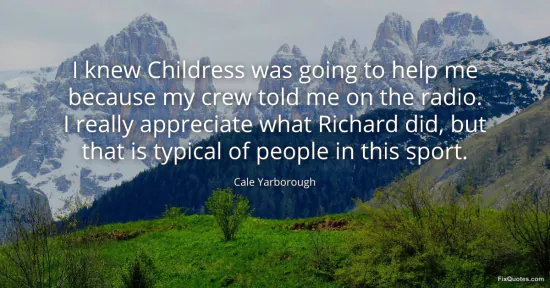 Yarborough, Cale. "I knew Childress was going to help me because my crew told me on the radio. I really appreciate what Richard did, but that is typical of people in this sport." FixQuotes. January 16, 2026. https://fixquotes.com/quotes/i-knew-childress-was-going-to-help-me-because-my-111638/.