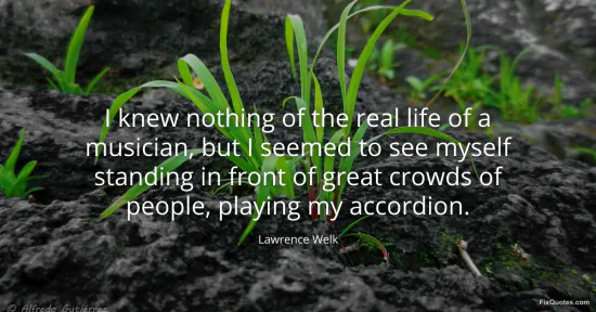 Welk, Lawrence. (2026, January 17). I knew nothing of the real life of a musician, but I seemed to see myself standing in front of great crowds of people, playing my accordion. FixQuotes. https://fixquotes.com/quotes/i-knew-nothing-of-the-real-life-of-a-musician-but-62425/