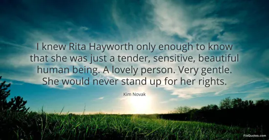 "I knew Rita Hayworth only enough to know that she was just a tender, sensitive, beautiful human being. A lovely person. Very gentle. She would never stand up for her rights"