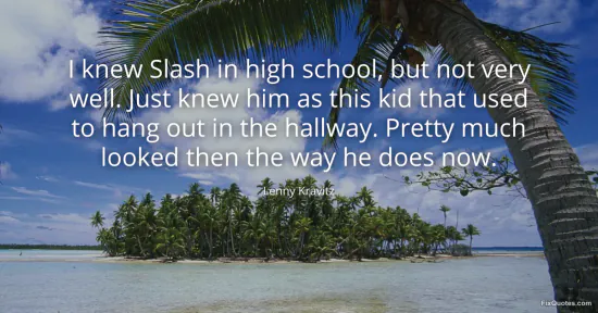 Kravitz, Lenny. "I knew Slash in high school, but not very well. Just knew him as this kid that used to hang out in the hallway. Pretty much looked then the way he does now." FixQuotes. January 17, 2026. https://fixquotes.com/quotes/i-knew-slash-in-high-school-but-not-very-well-74235/.