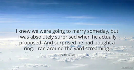 Garner, Jennifer. "I knew we were going to marry someday, but I was absolutely surprised when he actually proposed. And surprised he had bought a ring. I ran around the yard screaming." FixQuotes. January 15, 2026. https://fixquotes.com/quotes/i-knew-we-were-going-to-marry-someday-but-i-was-170869/.