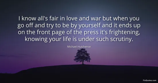 Hutchence, Michael. (2026, January 15). I know all's fair in love and war but when you go off and try to be by yourself and it ends up on the front page of the press it's frightening, knowing your life is under such scrutiny. FixQuotes. https://fixquotes.com/quotes/i-know-alls-fair-in-love-and-war-but-when-you-go-149061/