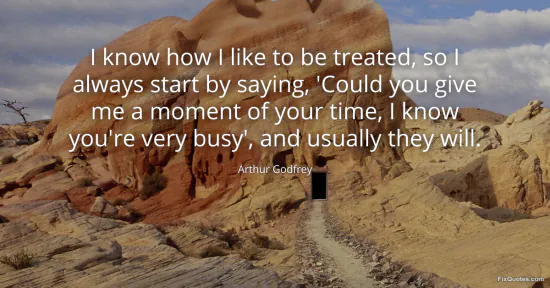 Godfrey, Arthur. (2026, February 17). I know how I like to be treated, so I always start by saying, 'Could you give me a moment of your time, I know you're very busy', and usually they will. FixQuotes. https://fixquotes.com/quotes/i-know-how-i-like-to-be-treated-so-i-always-start-100851/