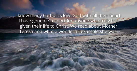 McCartney, Bill. "I know many Catholics love God with all their heart. I have genuine respect for anyone who truly has given their life to Christ. We read about Mother Teresa and what a wonderful example she was." FixQuotes. January 16, 2026. https://fixquotes.com/quotes/i-know-many-catholics-love-god-with-all-their-98267/.