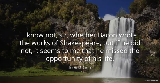 Barrie, James M. "I know not, sir, whether Bacon wrote the works of Shakespeare, but if he did not, it seems to me that he missed the opportunity of his life." FixQuotes. January 18, 2026. https://fixquotes.com/quotes/i-know-not-sir-whether-bacon-wrote-the-works-of-6779/.