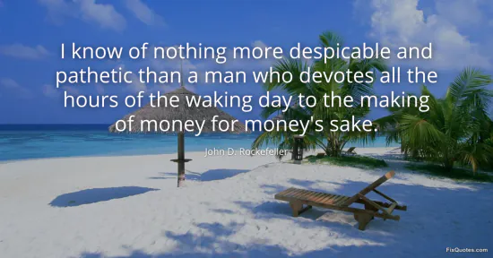 Rockefeller, John D. (2026, January 18). I know of nothing more despicable and pathetic than a man who devotes all the hours of the waking day to the making of money for money's sake. FixQuotes. https://fixquotes.com/quotes/i-know-of-nothing-more-despicable-and-pathetic-14685/