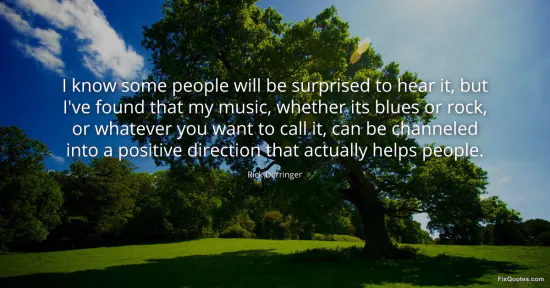 Derringer, Rick. "I know some people will be surprised to hear it, but I've found that my music, whether its blues or rock, or whatever you want to call it, can be channeled into a positive direction that actually helps people." FixQuotes. January 16, 2026. https://fixquotes.com/quotes/i-know-some-people-will-be-surprised-to-hear-it-109800/.