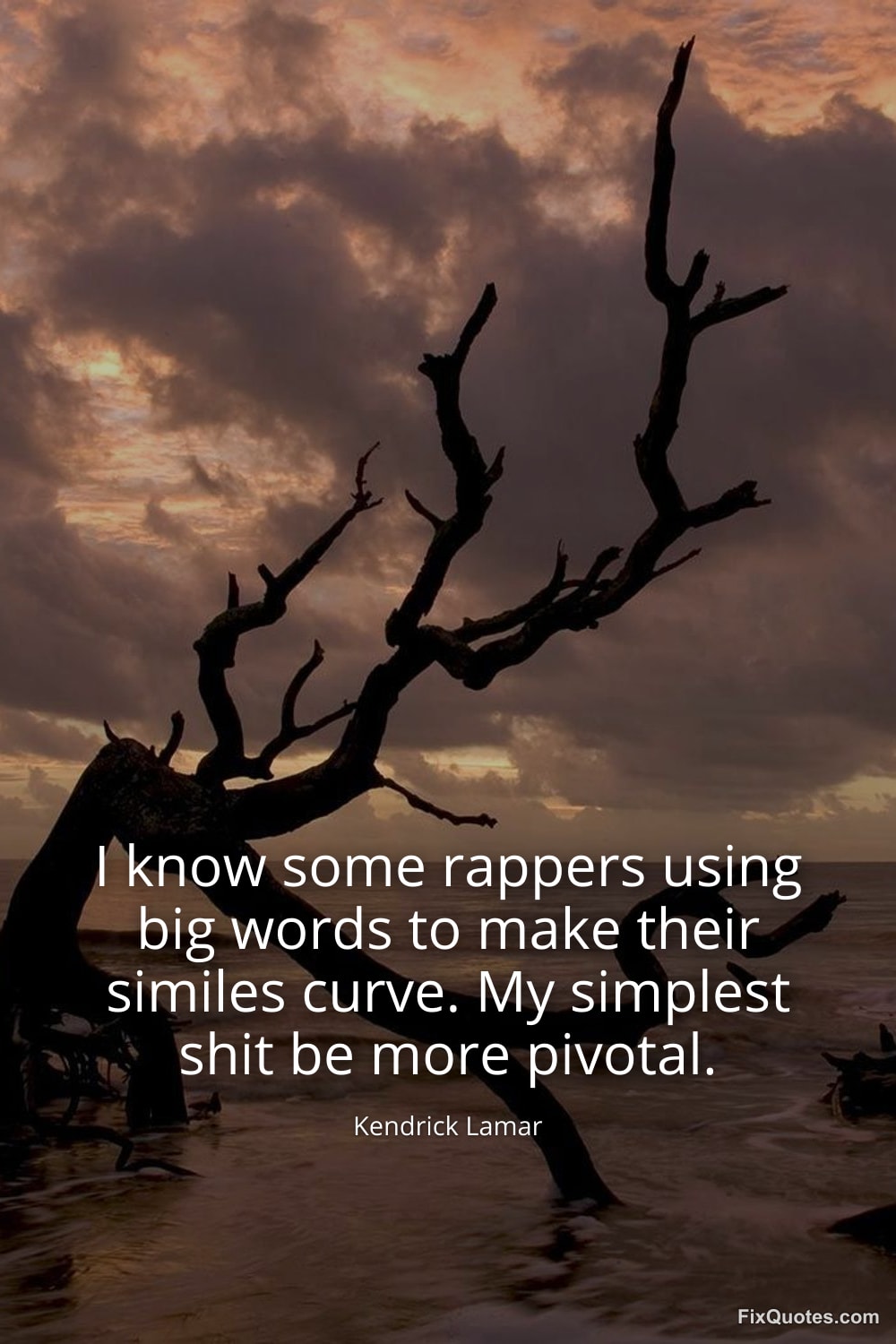 Lamar, Kendrick. (2026, February 1). I know some rappers using big words to make their similes curve. My simplest shit be more pivotal. FixQuotes. https://fixquotes.com/quotes/i-know-some-rappers-using-big-words-to-make-their-184839/