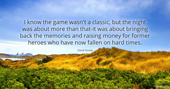 Ginola, David. "I know the game wasn't a classic, but the night was about more than that-it was about bringing back the memories and raising money for former heroes who have now fallen on hard times." FixQuotes. January 15, 2026. https://fixquotes.com/quotes/i-know-the-game-wasnt-a-classic-but-the-night-was-140781/.