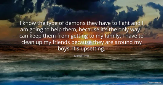Irvin, Michael. (2026, January 16). I know the type of demons they have to fight and I am going to help them, because it's the only way I can keep them from getting to my family. I have to clean up my friends because they are around my boys. It's upsetting. FixQuotes. https://fixquotes.com/quotes/i-know-the-type-of-demons-they-have-to-fight-and-89634/