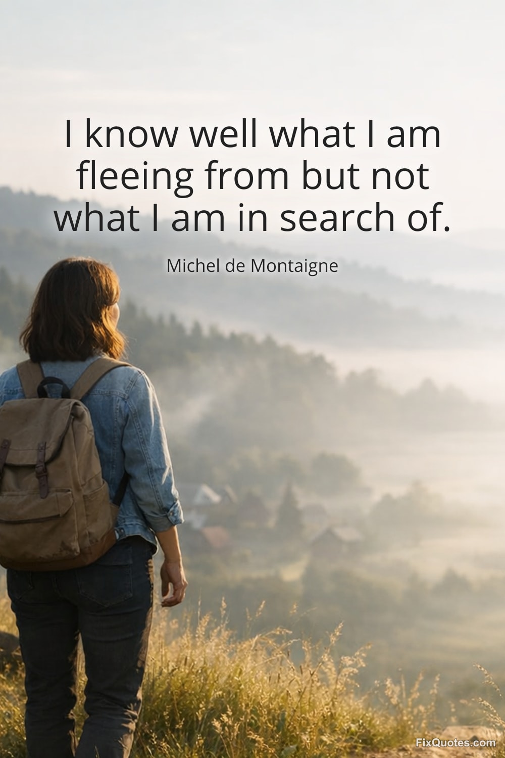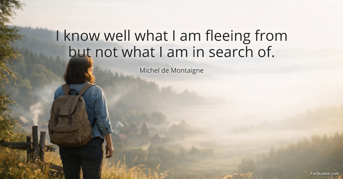 Montaigne, Michel de. "I know well what I am fleeing from but not what I am in search of." FixQuotes. February 7, 2026. https://fixquotes.com/quotes/i-know-well-what-i-am-fleeing-from-but-not-what-i-17396/.