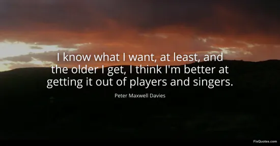 Davies, Peter Maxwell. (2026, February 17). I know what I want, at least, and the older I get, I think I'm better at getting it out of players and singers. FixQuotes. https://fixquotes.com/quotes/i-know-what-i-want-at-least-and-the-older-i-get-i-104945/