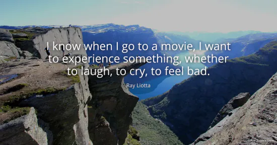 Liotta, Ray. (2026, February 16). I know when I go to a movie, I want to experience something, whether to laugh, to cry, to feel bad. FixQuotes. https://fixquotes.com/quotes/i-know-when-i-go-to-a-movie-i-want-to-experience-115841/