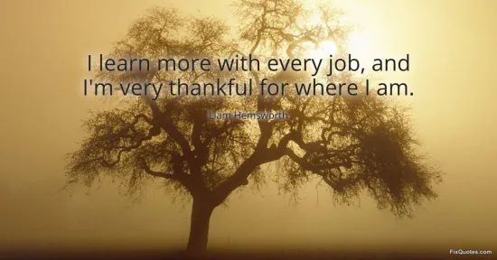Hemsworth, Liam. (2026, January 15). I learn more with every job, and I'm very thankful for where I am. FixQuotes. https://fixquotes.com/quotes/i-learn-more-with-every-job-and-im-very-thankful-172459/