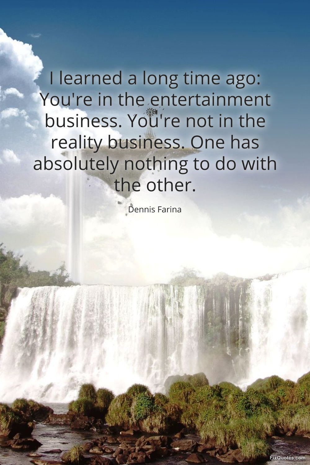 Farina, Dennis. "I learned a long time ago: You're in the entertainment business. You're not in the reality business. One has absolutely nothing to do with the other." FixQuotes. January 15, 2026. https://fixquotes.com/quotes/i-learned-a-long-time-ago-youre-in-the-167323/.