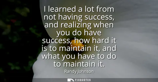 The line captures the paradox of greatness: failure is a better teacher than triumph, yet triumph is the harder assignment. Randy Johnson speaks from the long, uneven arc of a career that began as raw potential and wildness. Early on with Montreal and Seattle, he was known as much for walks as for strikeouts. He had to dismantle and rebuild his delivery, seek out mentors, and accept uncomfortable feedback. Work with coaches and conversations with veterans helped him harness his mechanics, shorten the arm path, and trust his release point. The walks dropped, the strikeouts stayed, and the path to dominance opened.