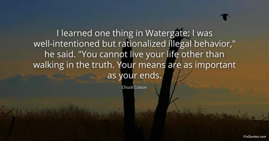 Colson, Chuck. (2026, January 14). I learned one thing in Watergate: I was well-intentioned but rationalized illegal behavior," he said. "You cannot live your life other than walking in the truth. Your means are as important as your ends. FixQuotes. https://fixquotes.com/quotes/i-learned-one-thing-in-watergate-i-was-130051/