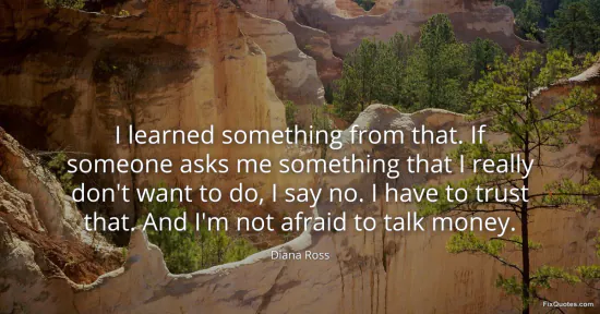 Ross, Diana. (2026, January 17). I learned something from that. If someone asks me something that I really don't want to do, I say no. I have to trust that. And I'm not afraid to talk money. FixQuotes. https://fixquotes.com/quotes/i-learned-something-from-that-if-someone-asks-me-41549/
