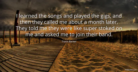 Barker, Travis. (2026, January 16). I learned the songs and played the gigs, and then they called me about a month later. They told me they were like super stoked on me and asked me to join their band. FixQuotes. https://fixquotes.com/quotes/i-learned-the-songs-and-played-the-gigs-and-then-117619/