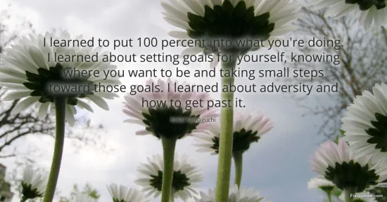 "I learned to put 100 percent into what you're doing. I learned about setting goals for yourself, knowing where you want to be and taking small steps toward those goals. I learned about adversity and how to get past it." FixQuotes, 16 Jan. 2026, https://fixquotes.com/quotes/i-learned-to-put-100-percent-into-what-youre-129837/. Accessed 12 Feb. 2026.