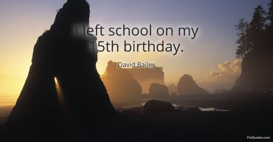 Bailey, David. "I left school on my 15th birthday." FixQuotes. March 23, 2026. https://fixquotes.com/quotes/i-left-school-on-my-15th-birthday-186297/.